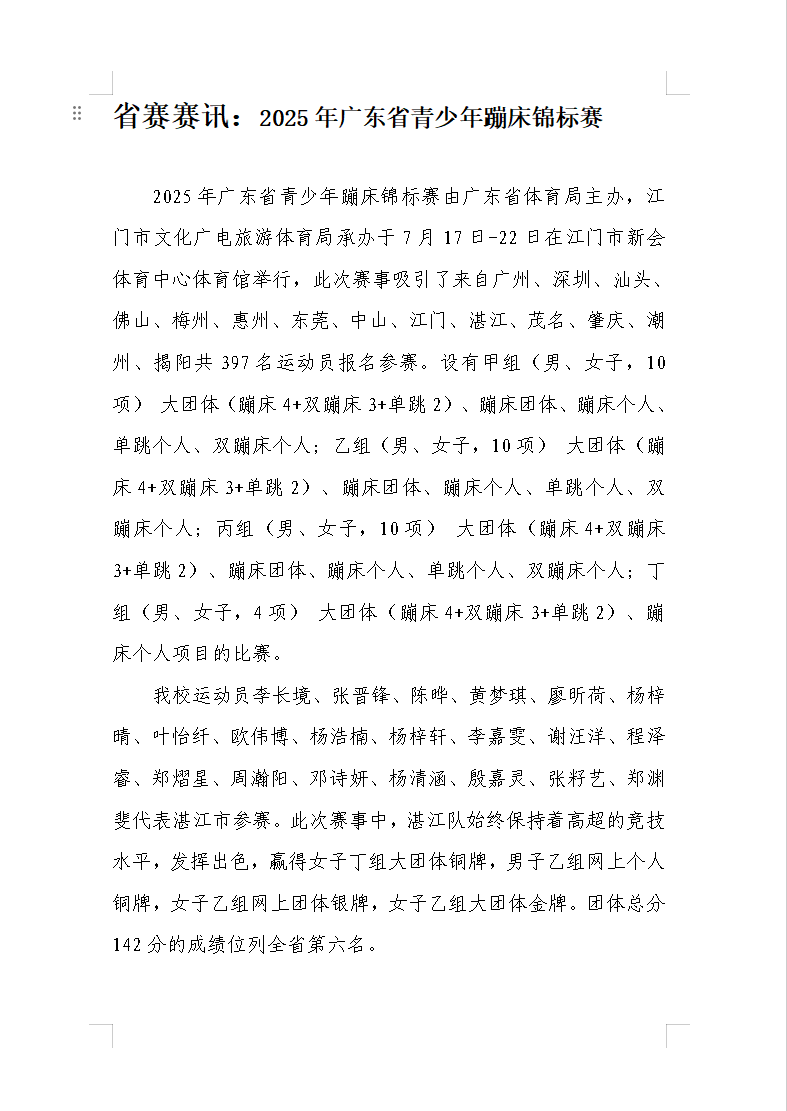 > 通知公告 > 省赛赛讯:2025年广东省青少年蹦床锦标赛